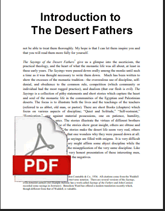 Shortly after the Roman Empire stopped persecuting Christians a mist of complacency began to develop in the Church. Without persecution it was far more easy for a Christian to become lazy in his/her faith. Christians were no longer under threat - even the great Emperor had been a Christian! As the Church became more lax, serious Christians became restless to do something bold and heroic. Now there were no martyrs, so how would a young man prove he had steel in his soul? Fed up with a lazy church, many answered the call of the cross by venturing into the desert to live a life of prayer, humility and hardship. These men (and some women) lived alone in caves...seeking God. The Sayings of the Desert Fathers allow us a glimpse into the lives of these men and women.
